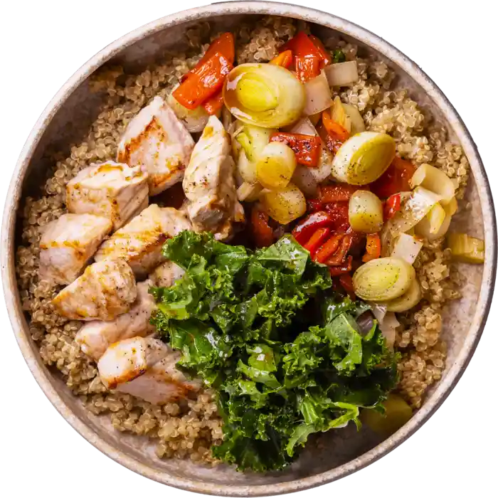 I kassen finder du varierede og moderne retter med masser af grønt og en god balance mellem kød, fisk og magre mejeriprodukter. Alle ingredienserne er 100 % økologiske og naturligt fri for gluten, og hver uge kan du se frem til én dag med fisk på menuen.