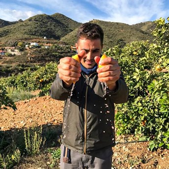I Aarstiderne har vi samarbejdet med familien Vallejo siden 2007, og det er skønt at følge med i, hvordan generationer skifter og nye kræfter driver plantagerne videre. I dag er Enrique pensioneret, og tredje generation har taget over. Juan har fra barnsben lært at være citrusbonde og styrer i dag driften. Dog kan Enrique ikke helt slippe sit gamle erhverv og ses dagligt snusende rundt ude mellem citrustræerne.